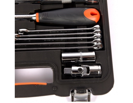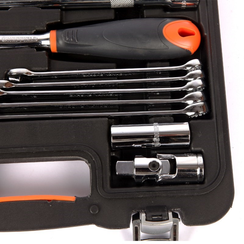 12.5MM系列公制六角火花塞套筒16mm;12.5MM系列梨花型头快速脱落胶柄棘轮扳手,12.5MM系列万向接头,10MM系列三用接头10mmx12.5mm(带孔),12.5MM系列接杆10"